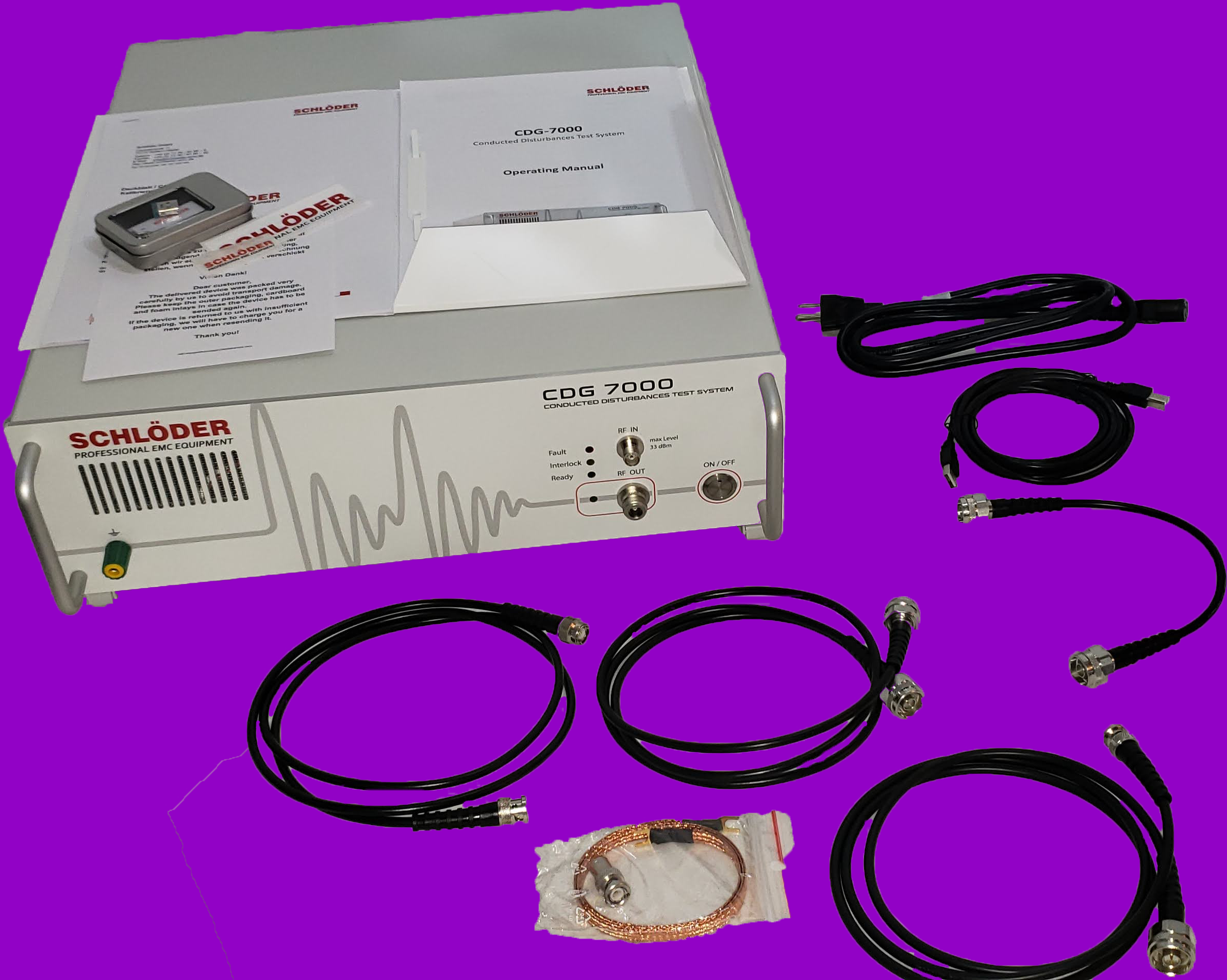 Built in a rugged 19” desktop case, the CDG 7000 is lightweight (approx. 11 kg) and backed by a 3-year warranty, making it ideal for laboratories, certification bodies, and in-house compliance testing in industries such as automotive, aerospace, telecommunications, medical electronics, and power generation.